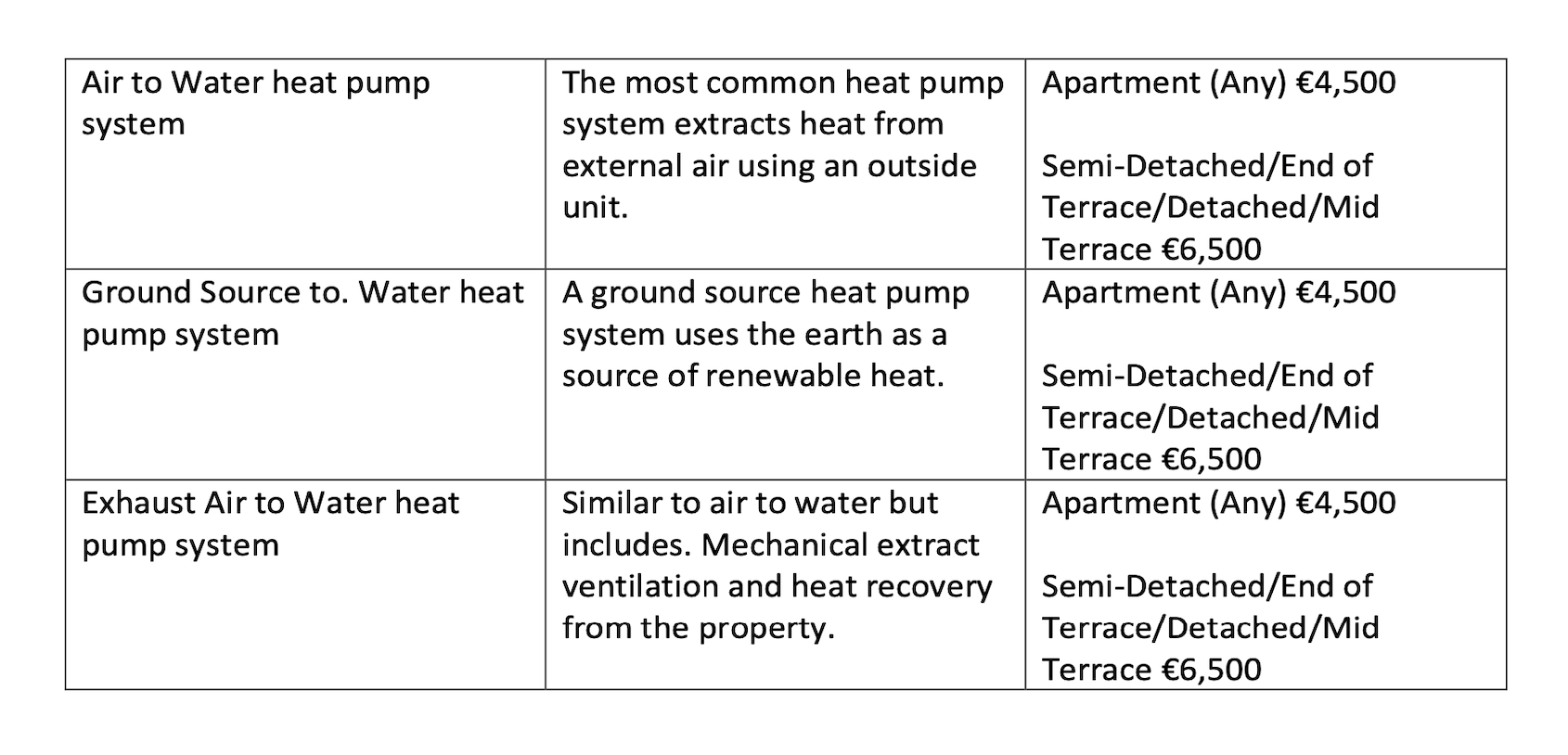 Heat pump system grant values